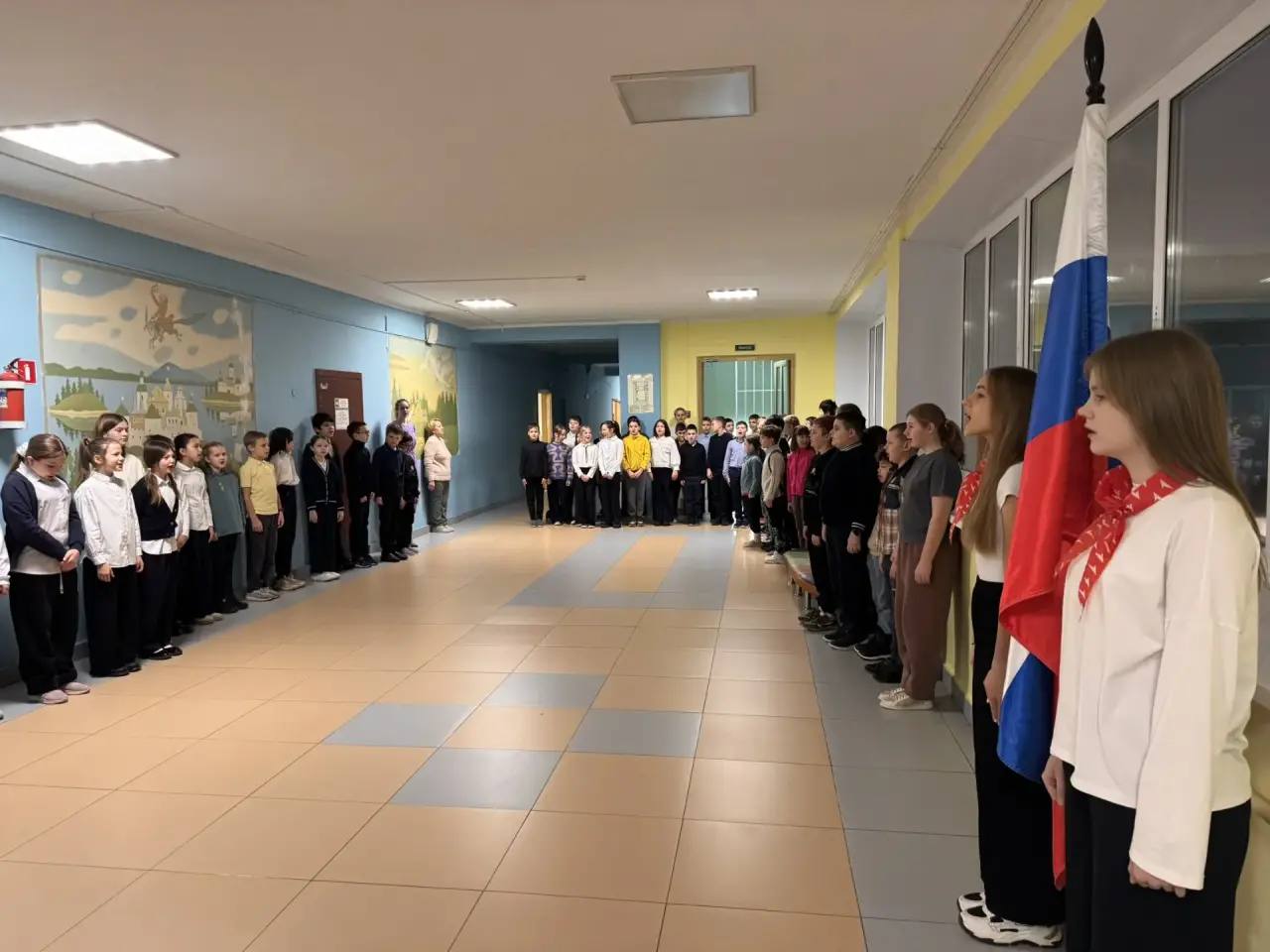 Сегодня, 12 января, в МБОУ СОШ №5 неделя началась с торжественного исполнения гимна Российской Федерации